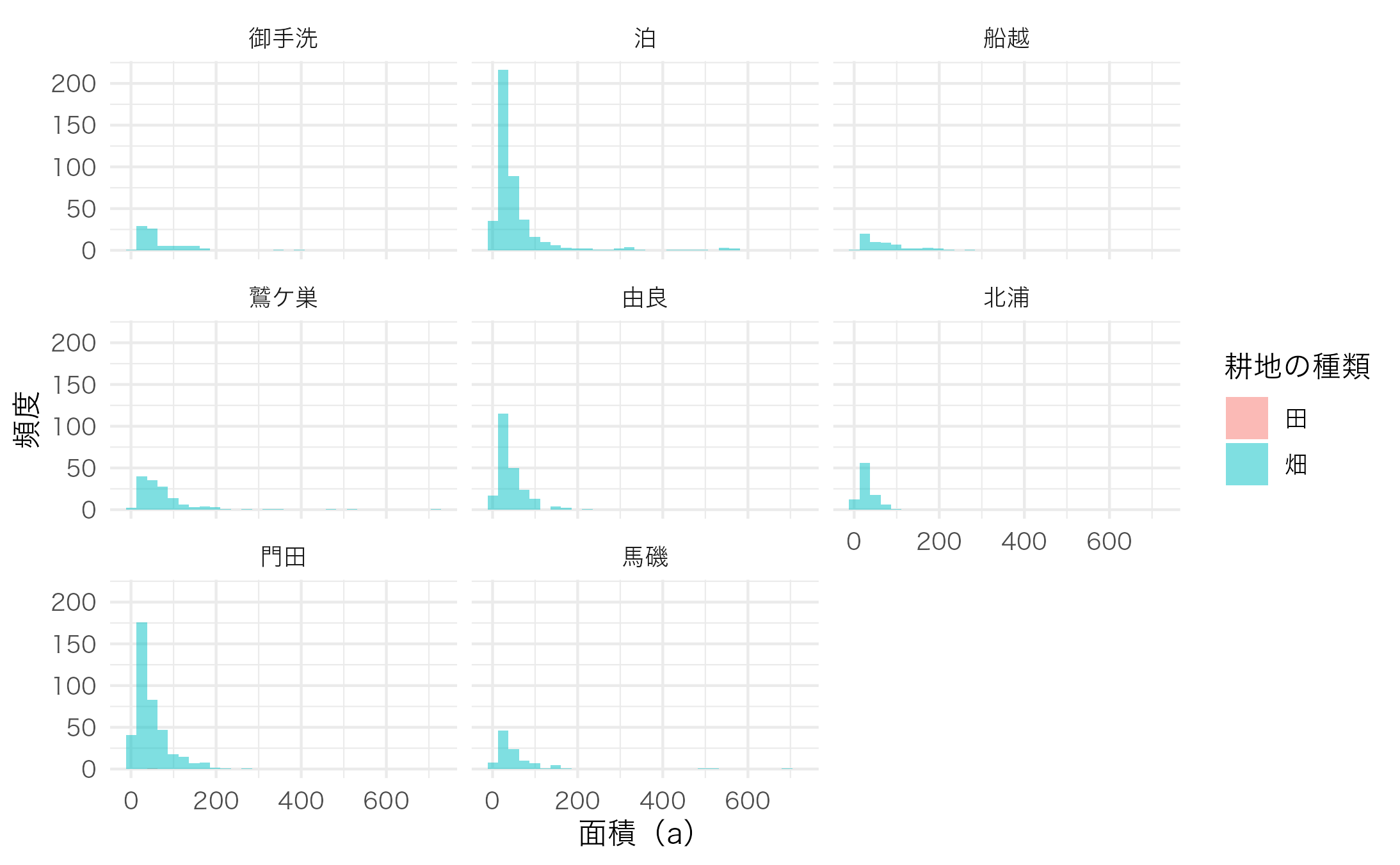 labs(x = "面積(a)", y = "頻度") +